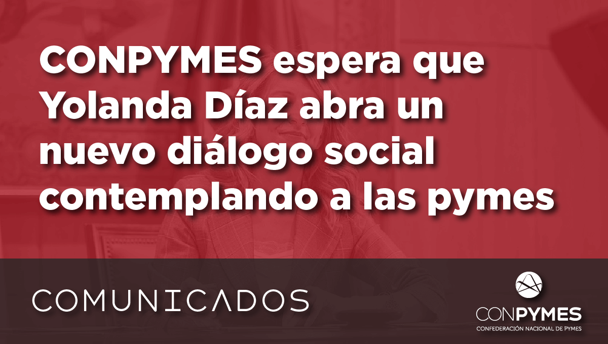 CONPYMES ha recibido con esperanza el anuncio de la vicepresidenta segunda y ministra de Trabajo y Economía Social en funciones, Yolanda Díaz, quien en su visita de ayer a PIMEC en Barcelona anunció que hay un acuerdo de Gobierno para modificar la representatividad del diálogo social, con el fin de que las pymes puedan participar con voz propia e independiente junto a la patronal de las grandes empresas y las organizaciones sindicales.