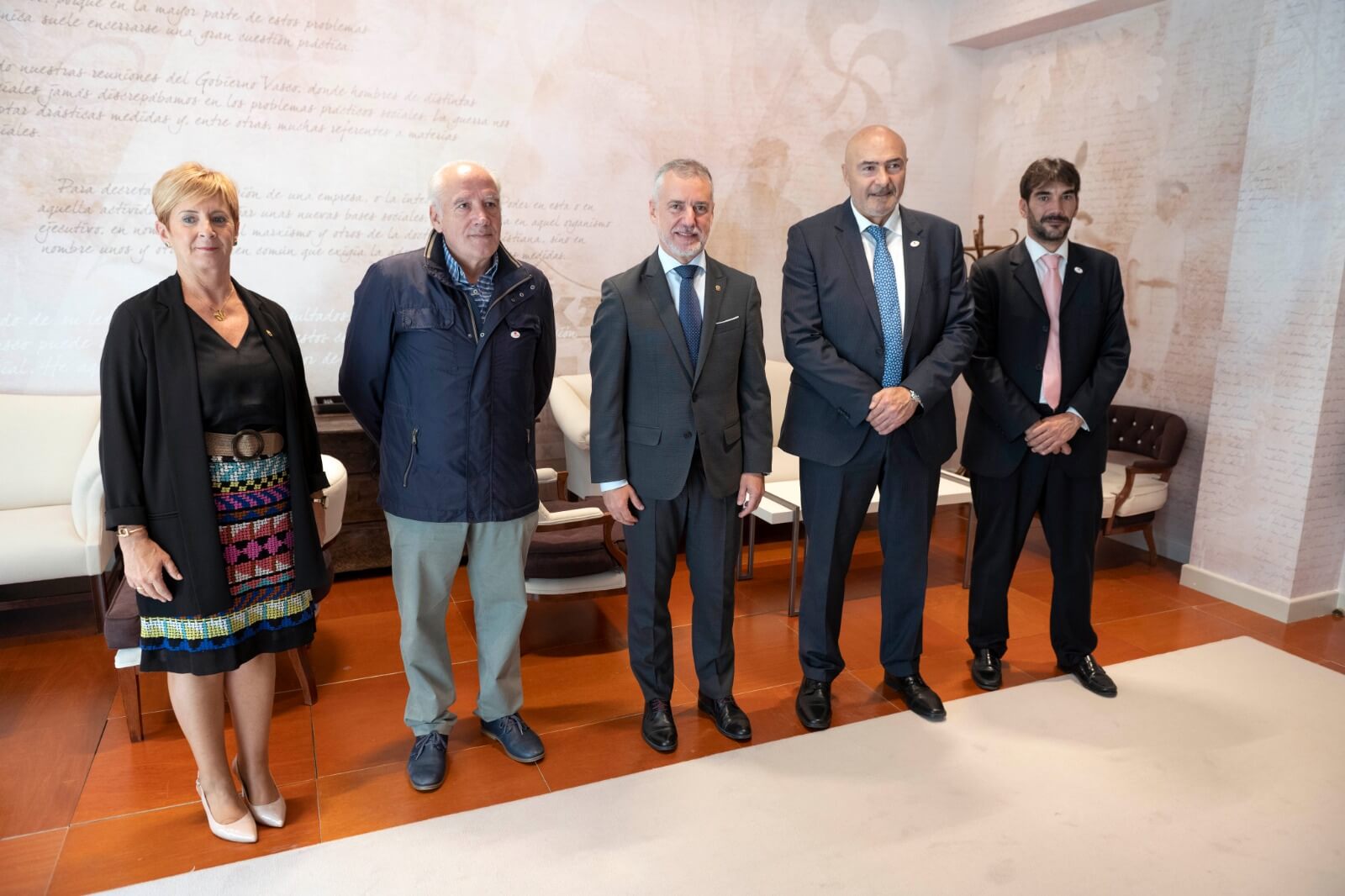 Arantxa Tapia, consejera de Desarrollo Económico, Sostenibilidad y Medio Ambiente del Gobierno Vasco; Juan Antonio Cabrero, vicepresidente de CONPYMES; Iñigo Urkullu, Lehendakari del Gobierno Vasco; José María Torres, presidente de CONPYMES, y José Manuel De Pablos, director de CONPYMES.