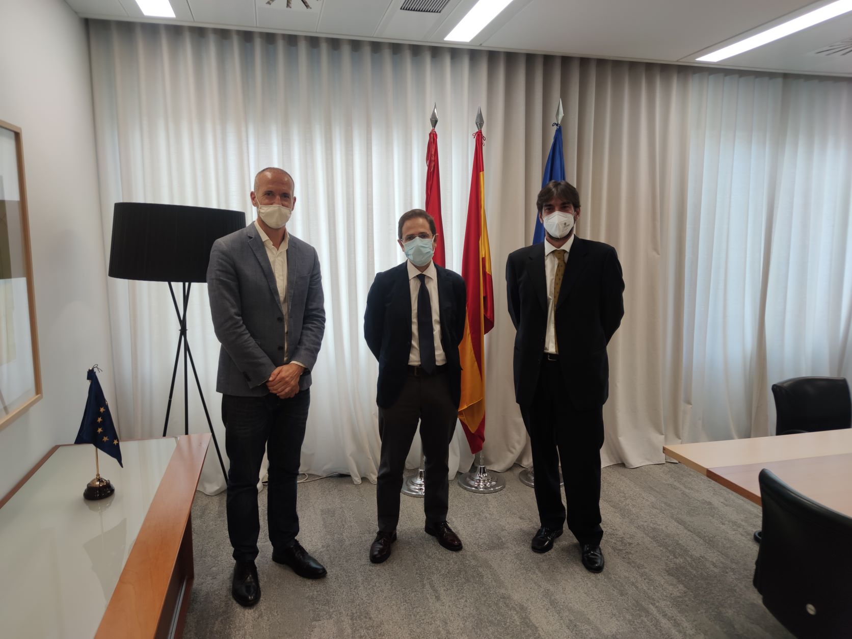 Madrid, 17 de septiembre de 2021. El Viceconsejero de Economía, Manuel Llamas Fraga ha mantenido hoy una reunión con el secretario de CONPYMES, Juan José Gil y el coordinador de CONPYMES, José Manuel De Pablos.