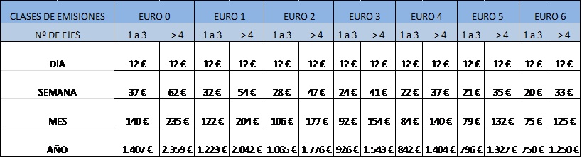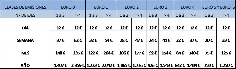 FASE 2. Para los vehículos pesados de mercancías categoría EURO 5, el incremento de tarifas se producirá a partir de enero de 2020.