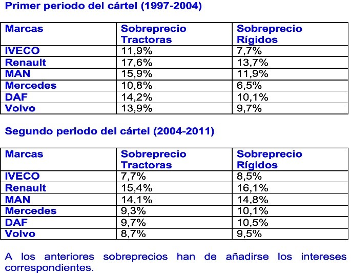 Este informe ha sido realizado por una de las mejores consultoras internacionales en materia anti-trust, con más de 50 años de experiencia y los más cualificados económetras, para dar sostén a la reclamación legal contra el Cártel. Como conclusión de dichos trabajos econométricos la consultora ha determinado unos porcentajes de sobreprecios en las adquisiciones de camiones según años y marcas.