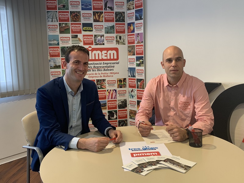 La Federación de la Pequeña y Mediana Empresa de Mallorca (PIMEM) y 3 Salud Mental (formada por las instituciones Gira-Sol, Estel de Llevant i Fundació Es Garrover) han firmado, hoy, en las oficinas de la patronal, un nuevo acuerdo de colaboración para favorecer la inclusión laboral de las personas con un trastorno de salud mental a través de su proyecto social Tres Glops.