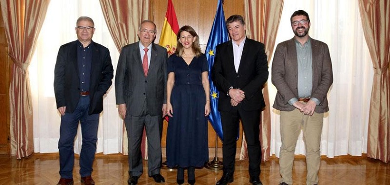 El presidente de PIMEC, Josep González, y la nueva ministra de Trabajo y Economía Social, Yolanda Díaz, han mantenido hoy una reunión en el Ministerio de Trabajo en una primera toma de contacto entre la patronal catalana y la máxima responsable de Trabajo.